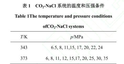 表1 CO2-NaCl係統的溫度和壓強條件