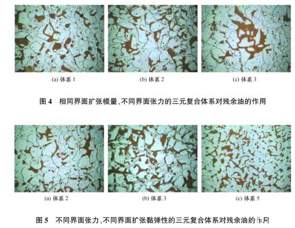 圖4相同界麵擴張模量、不同界麵張力的三元複合體係對殘餘油的作用