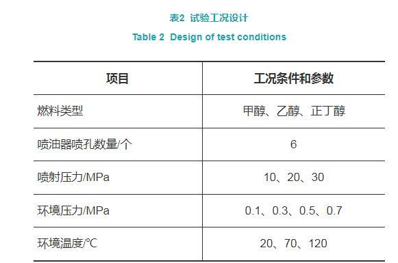 燃油噴射壓力會直接對燃油的射流初次和二次破碎產生影響,在該試驗中,噴射壓力的控製主要依靠高壓燃料供給係統,其中包括氣驅泵、高低壓氣泵、穩壓罐、油箱、油濾、低壓油泵、控製電路等部件。環境壓力簡稱背壓,代表了高壓定容彈內的空氣密度,對醇束的發展有著直接影響。通過氣體調壓閥控製供入定容彈的空氣流量,利用定容彈控製係統的進排氣開關遠程調節環境壓力的大小,同時觀測壓力表,誤差控製在要求值±0.01 MPa之內。環境溫度影響著燃料的密度、黏度和表麵張力,對噴霧特性有顯著影響。環境溫度的調節通過容彈控製係統中的加熱模塊,遠程操控布置在容彈內的8條加熱棒實現,容彈內頂部、四周、底部設有溫度傳感器,對腔內溫度進行實時監測,並將誤差控製在要求值±1℃之內。