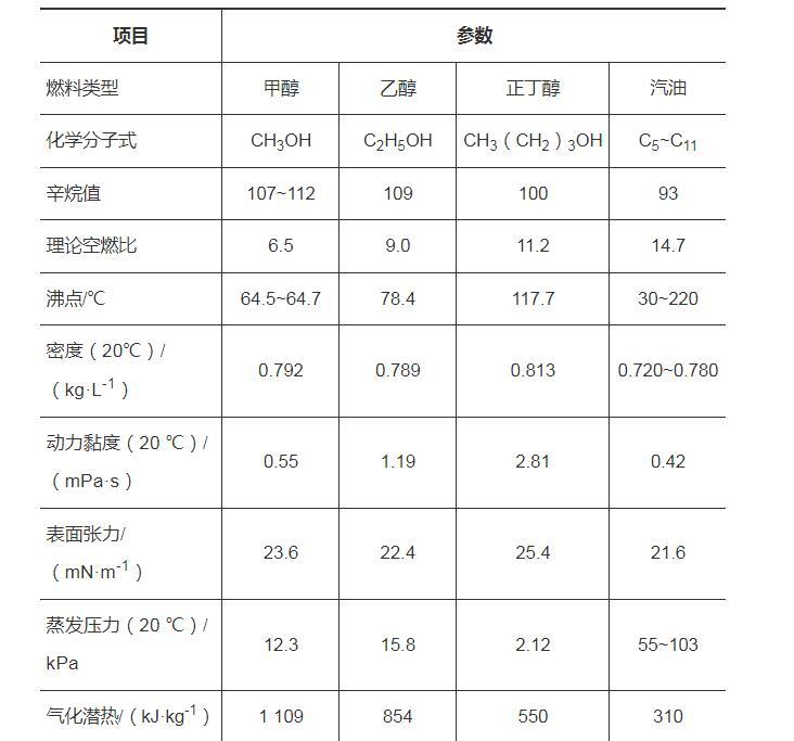 試驗燃料選取甲醇、乙醇和正丁醇,3種醇類燃料及汽油的基本燃料特性如表1所示。試驗工況設計方案如表2所示。為了保證數據準確性和可靠性,避免試驗中的隨機誤差,每種工況重複測試10次。