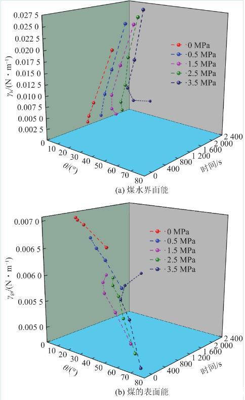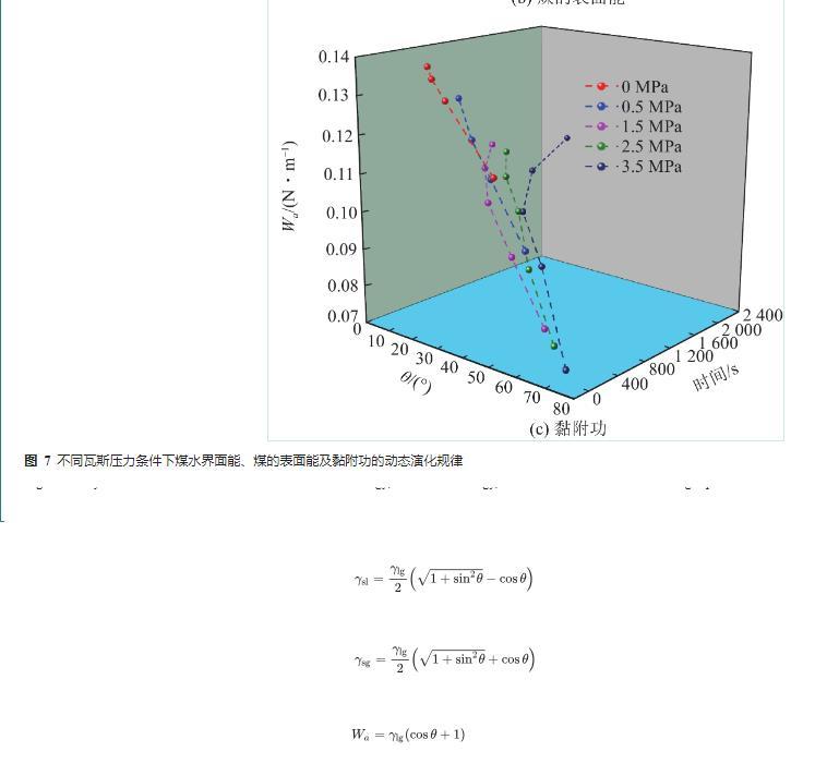3.2煤水界麵能、煤的表麵能及黏附功的動態演化規律