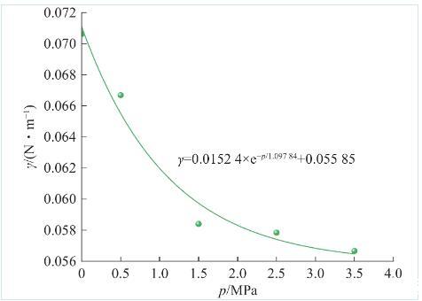 圖4不同瓦斯壓力條件下水的表麵張力