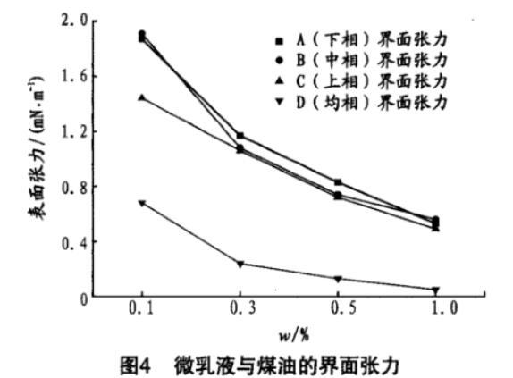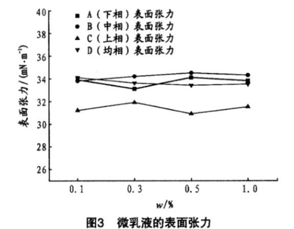 對上述微乳液進行了表/界麵張力的測試,結果見圖3。