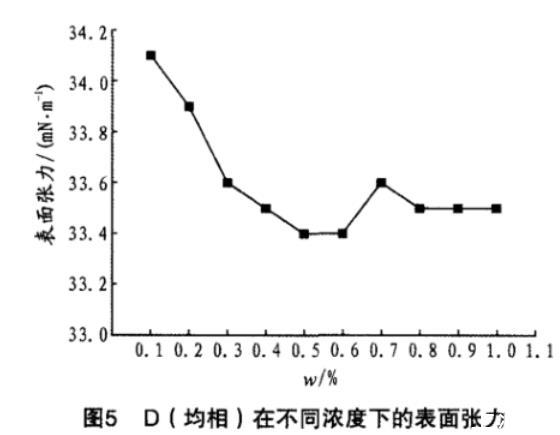 D(均相)在不同濃度下的表麵張力見圖5。