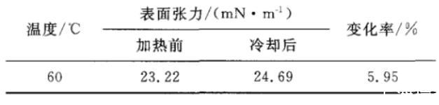 表2助排劑AO-4加熱前後表麵張力值