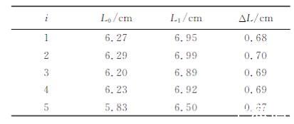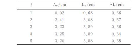 4)記錄水膜剛好被拉破時標尺的讀數L₁,計算得到彈簧的伸長量ΔL,實驗結果如表1所示。
