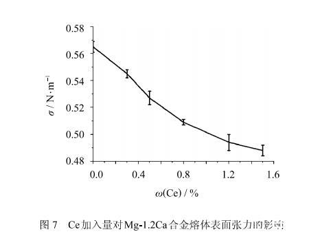 Ce含量對Mg-1.2Ca鎂合金阻燃性能及表麵張力的影響研究(二)
