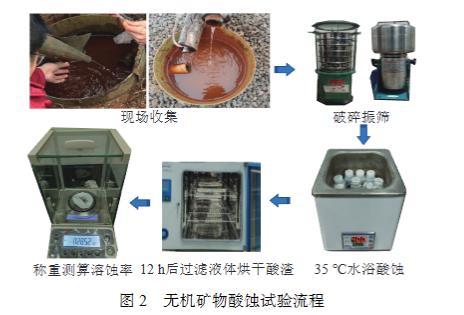 3)每隔2 h記錄溶蝕效果,酸浸12 h後過濾液體,收集烘幹酸渣(於100℃烘箱中烘幹12 h至恒重)計算溶蝕率,確定酸蝕礦物的最優酸度。