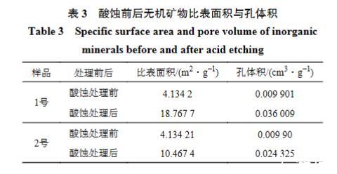 表3酸蝕前後無機礦物比表麵積與孔體積